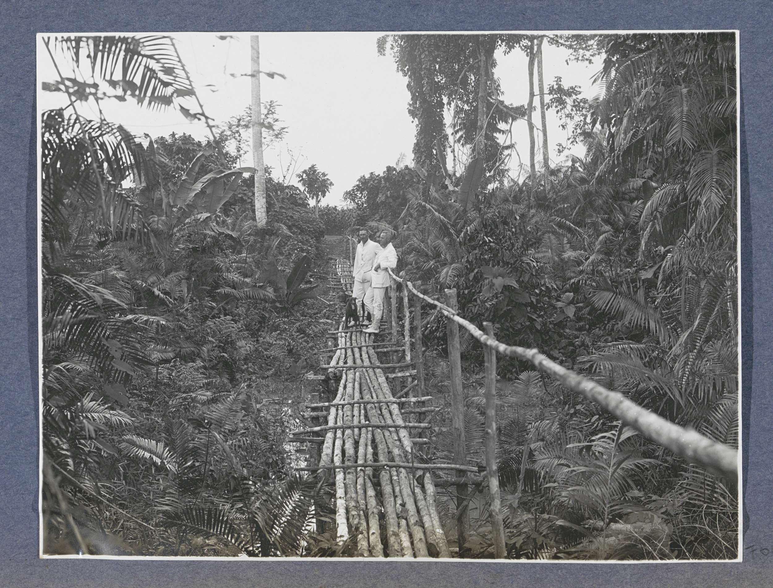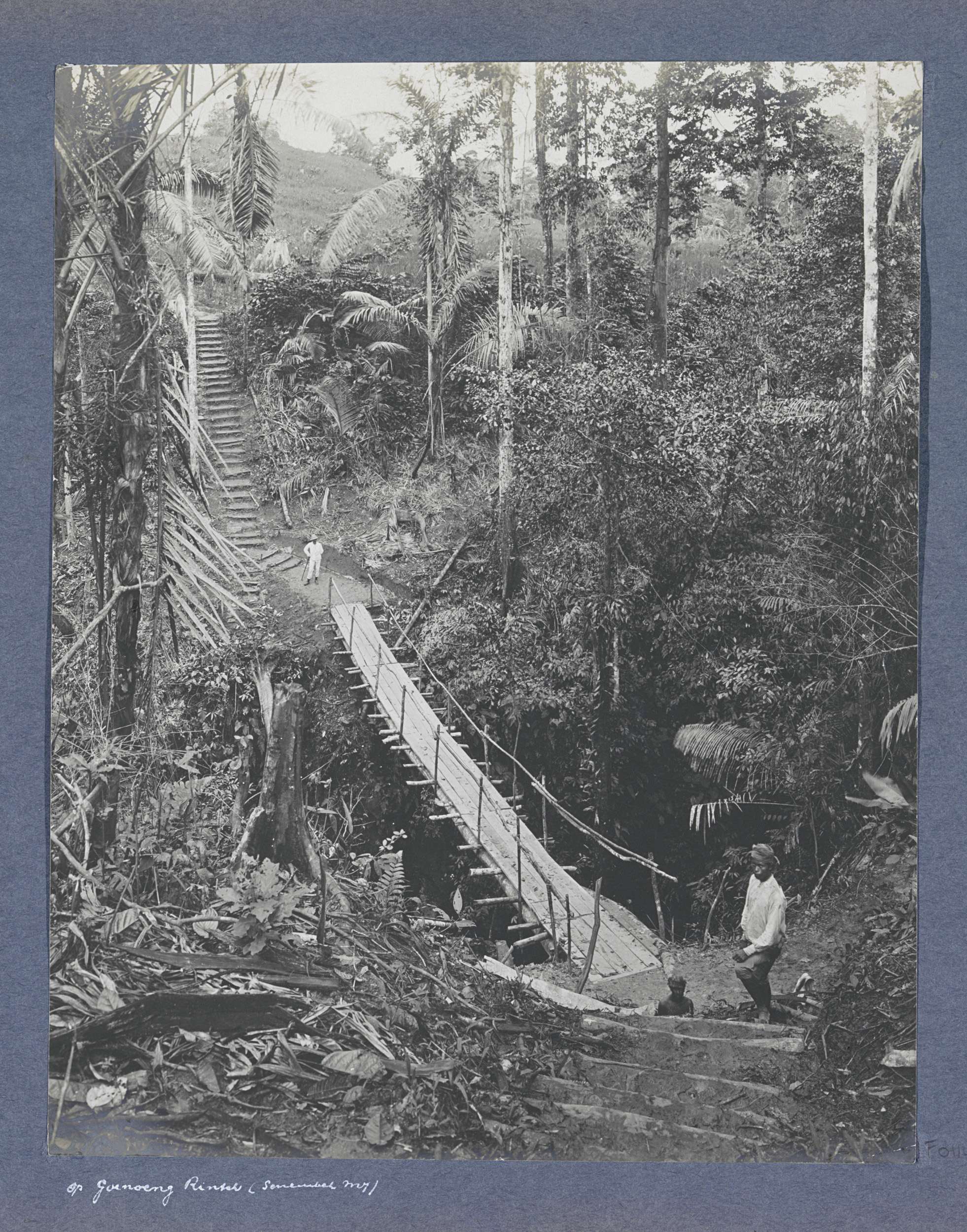 Hangbrug in het oerwoud bij de onderneming Goenoeng ...