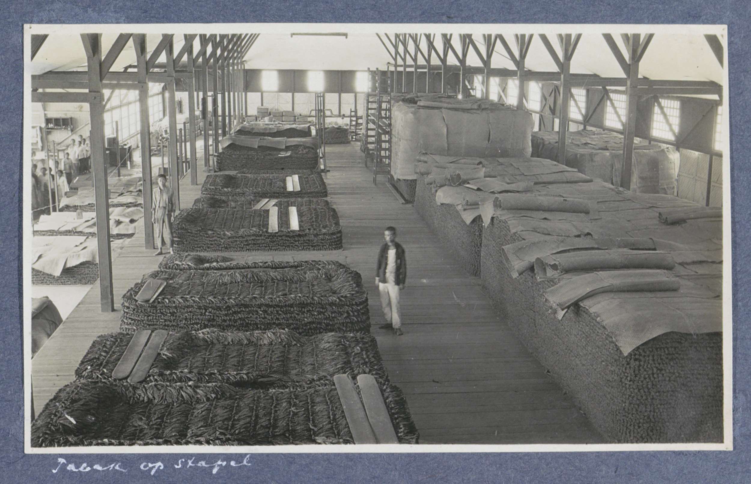 Opgestapelde tabak in een schuur op Sumatra