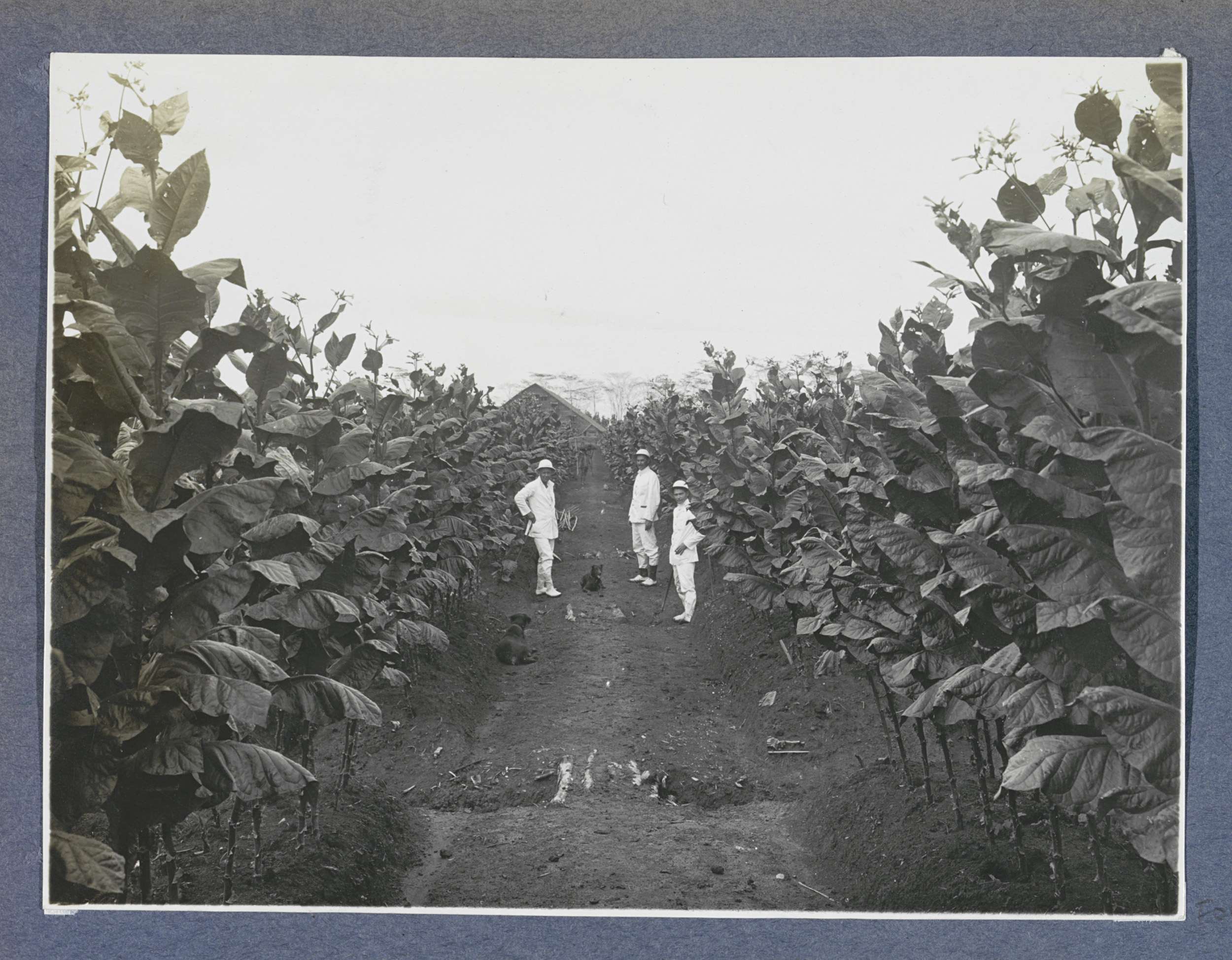 Leidinggevenden van plantage(s) en honden in de veld...