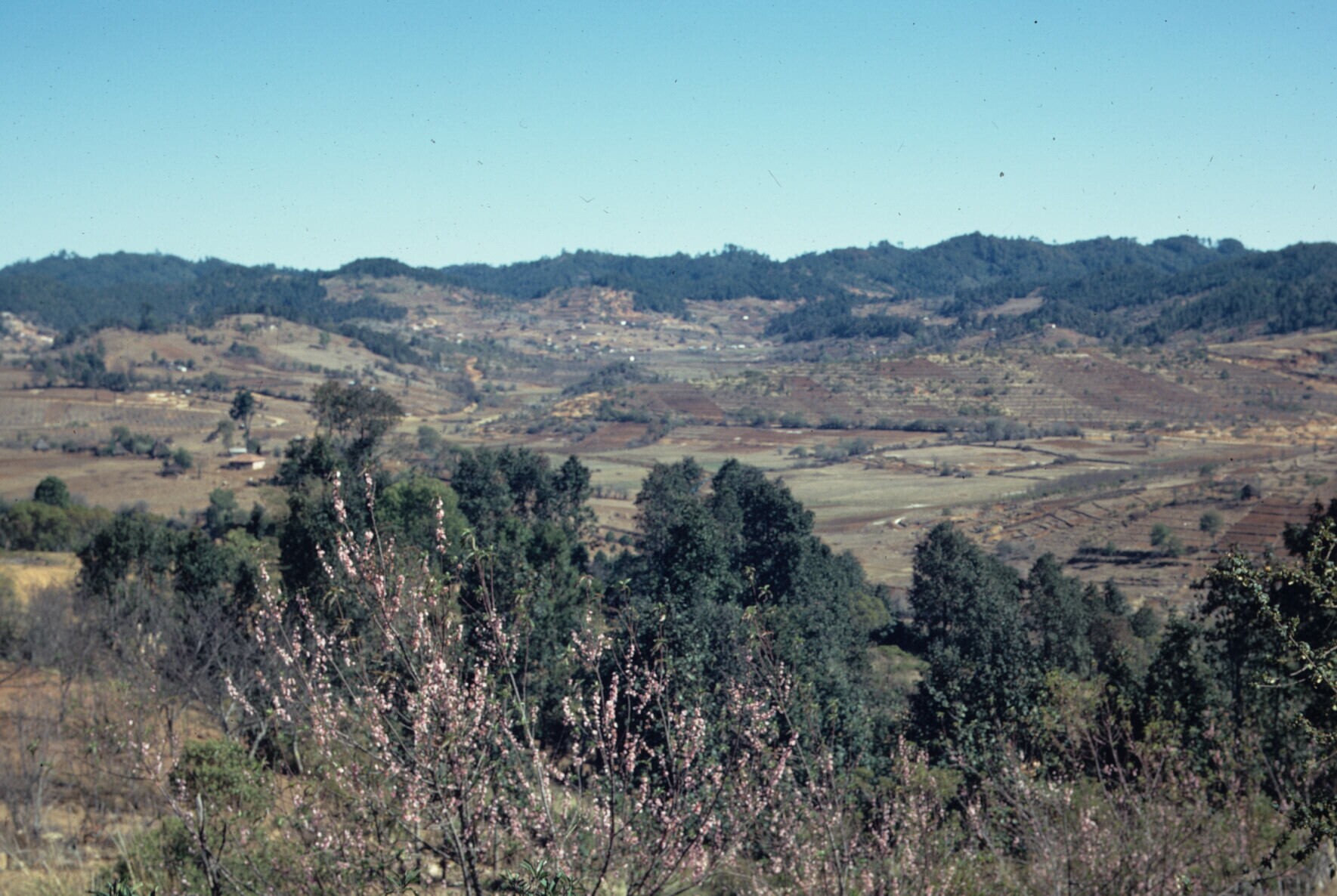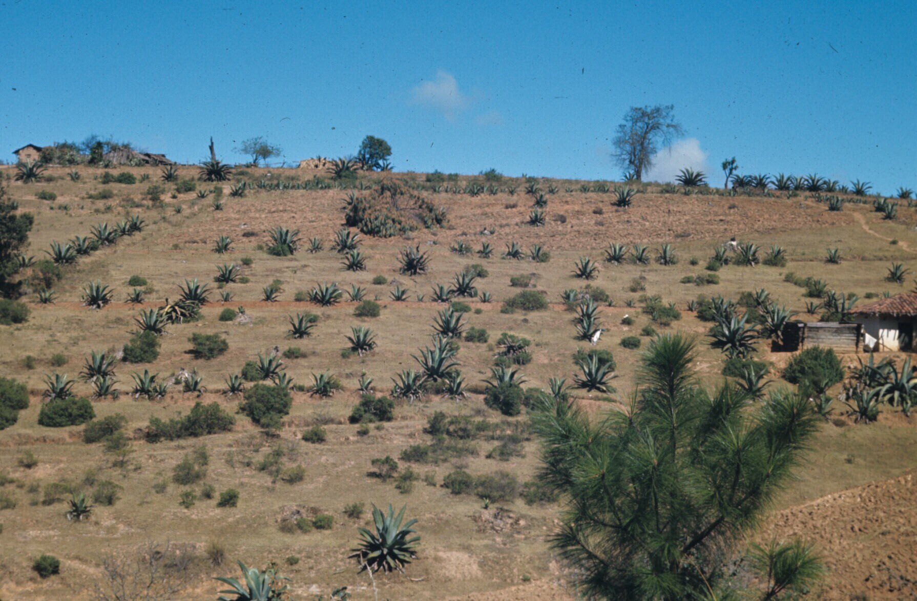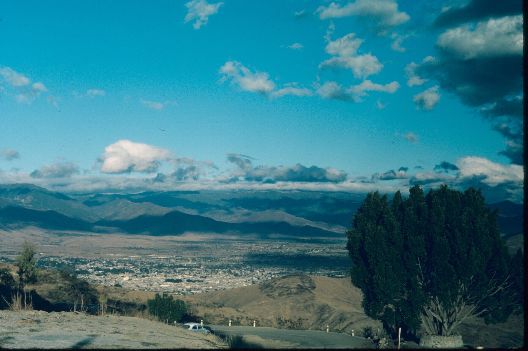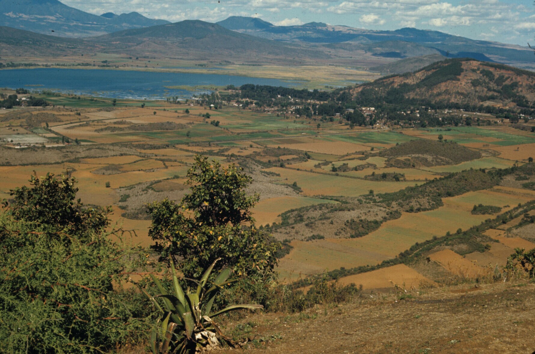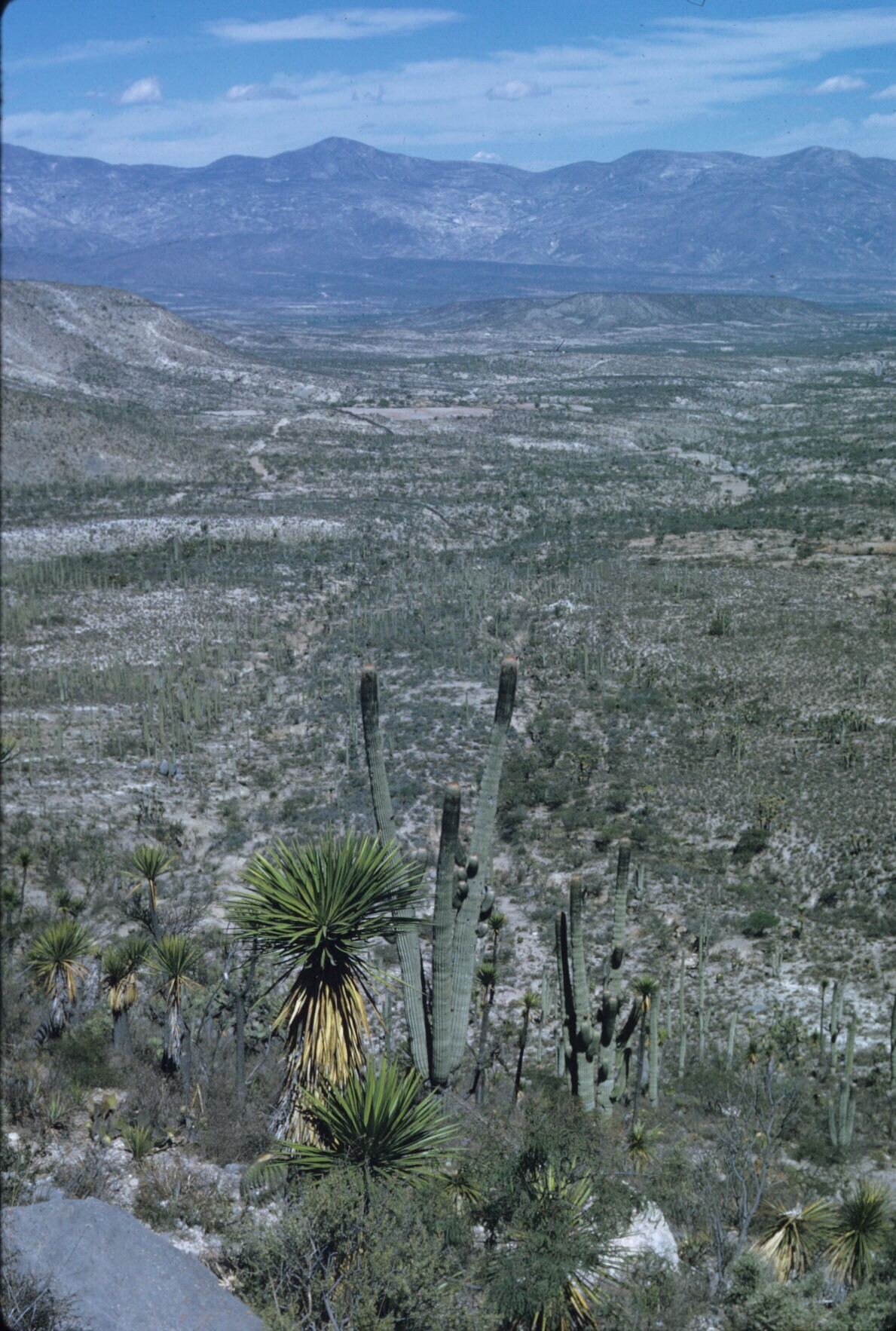 Vallei van Oaxaca vanuit Yagul, met opuntia's (nopal...