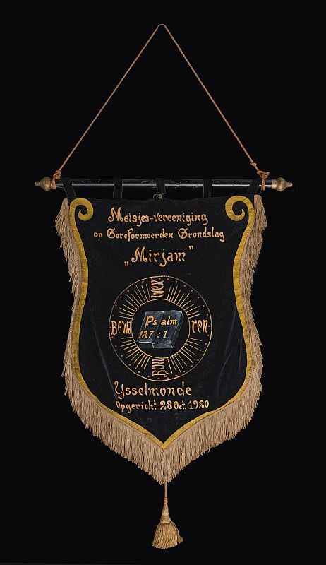 Zwart fluwelen vaandel "Meisjesvereniging op gerefor...