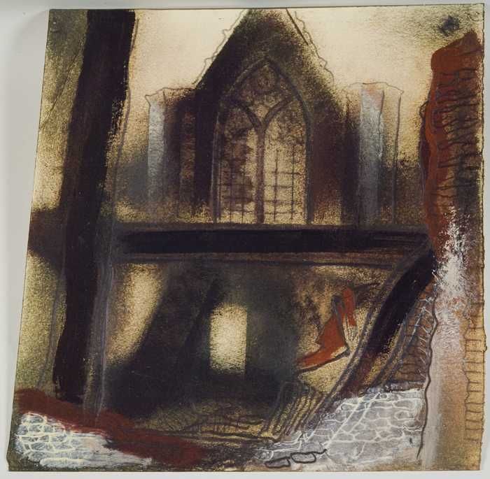 Ingekleurde tekening van het transept van de Laurens...
