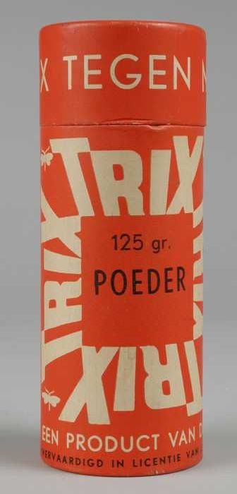 Hoge ronde bus met los deksel, "Trix, tegen motten",...