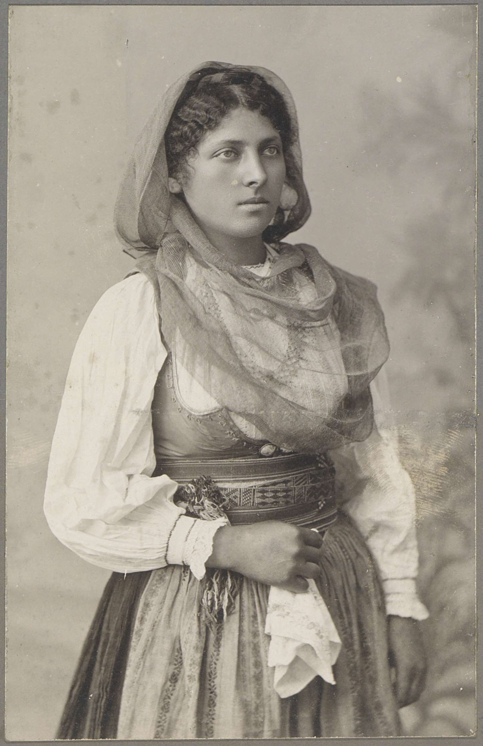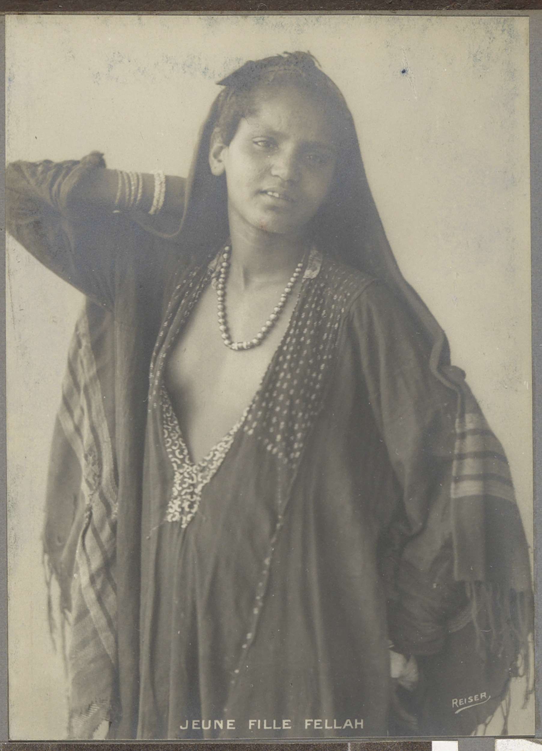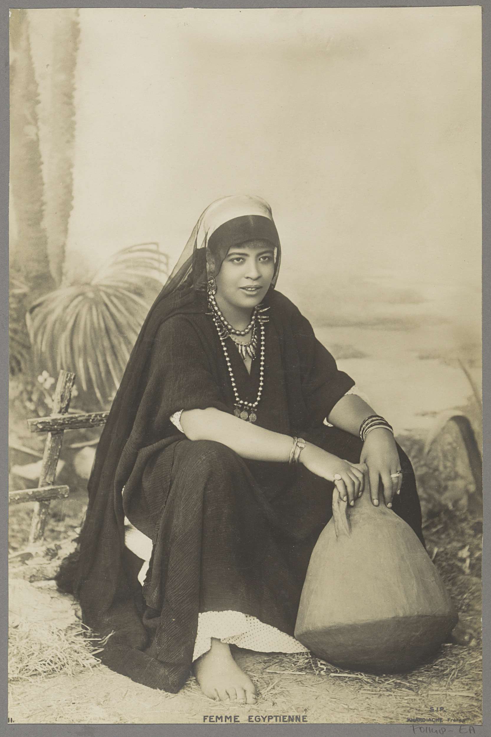Portret van een Egyptische vrouw, gehurkt met kruik