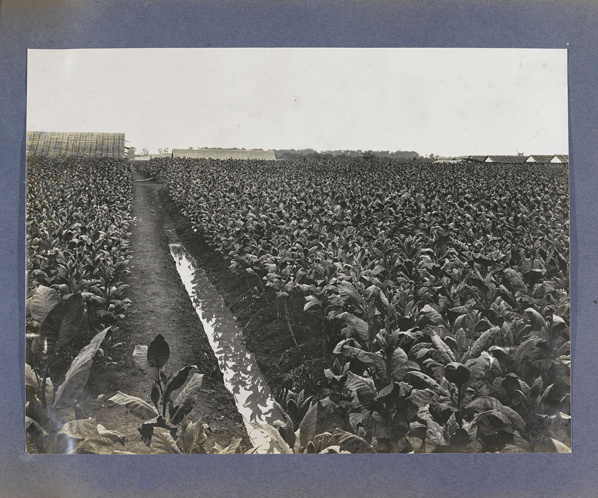 Vrouwen stapelen tabaksbladeren in een schuur op Sum...