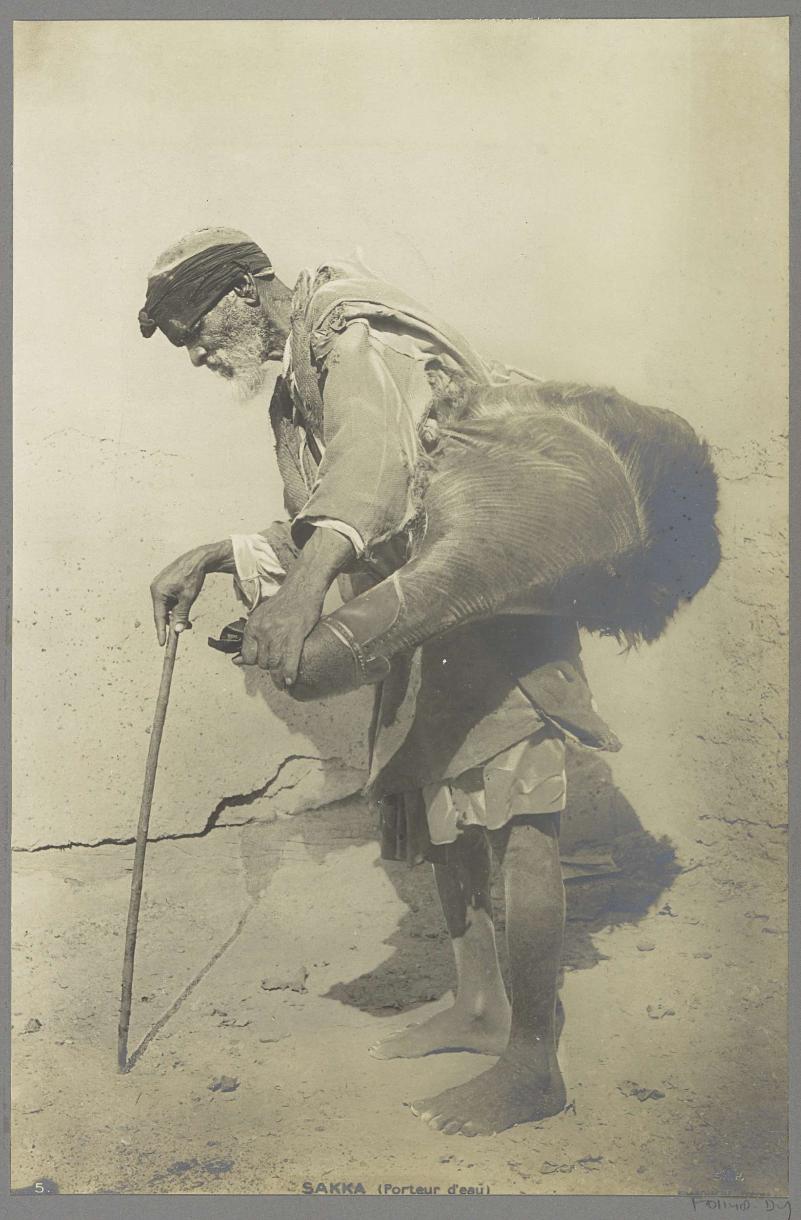 Portret van een waterdrager in Sakka, blootsvoets me...