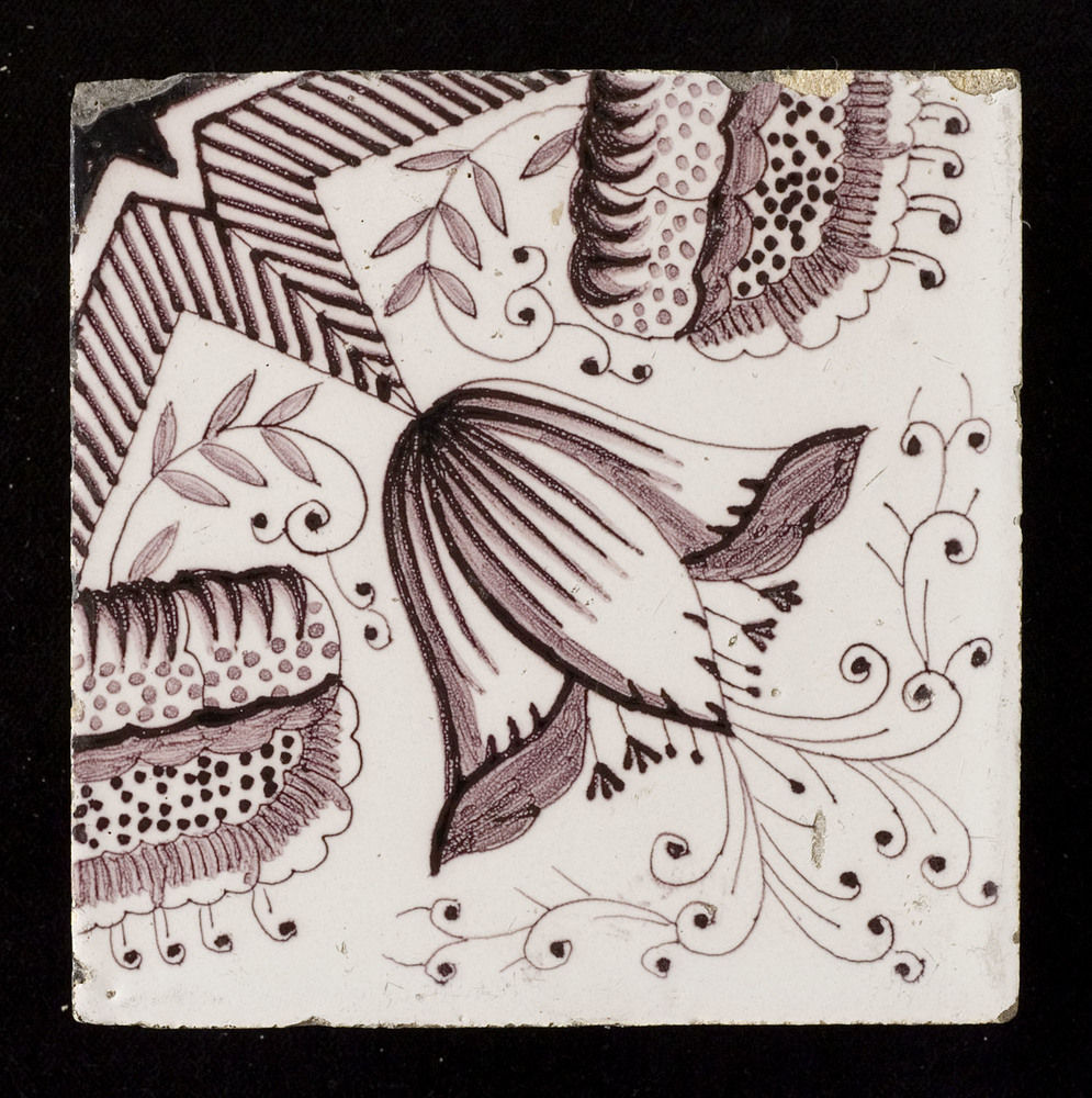tegel van keramiek met tinglazuur, voorstellende: bl...
