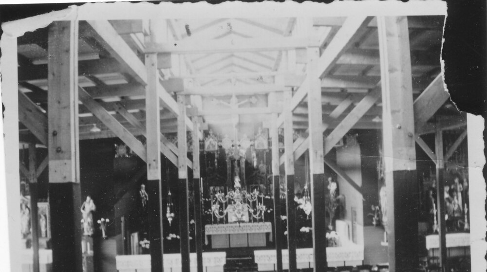 De noodkerk in de Langekerkstraat en schoolplein Mei...