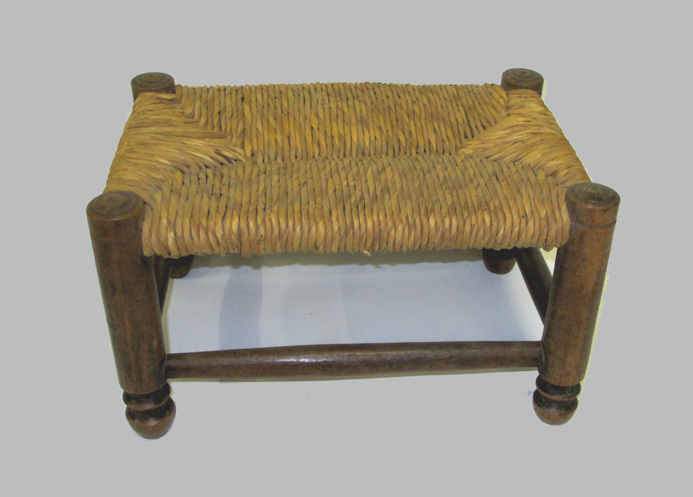 Voetenbank met een rietgevlochten zitting