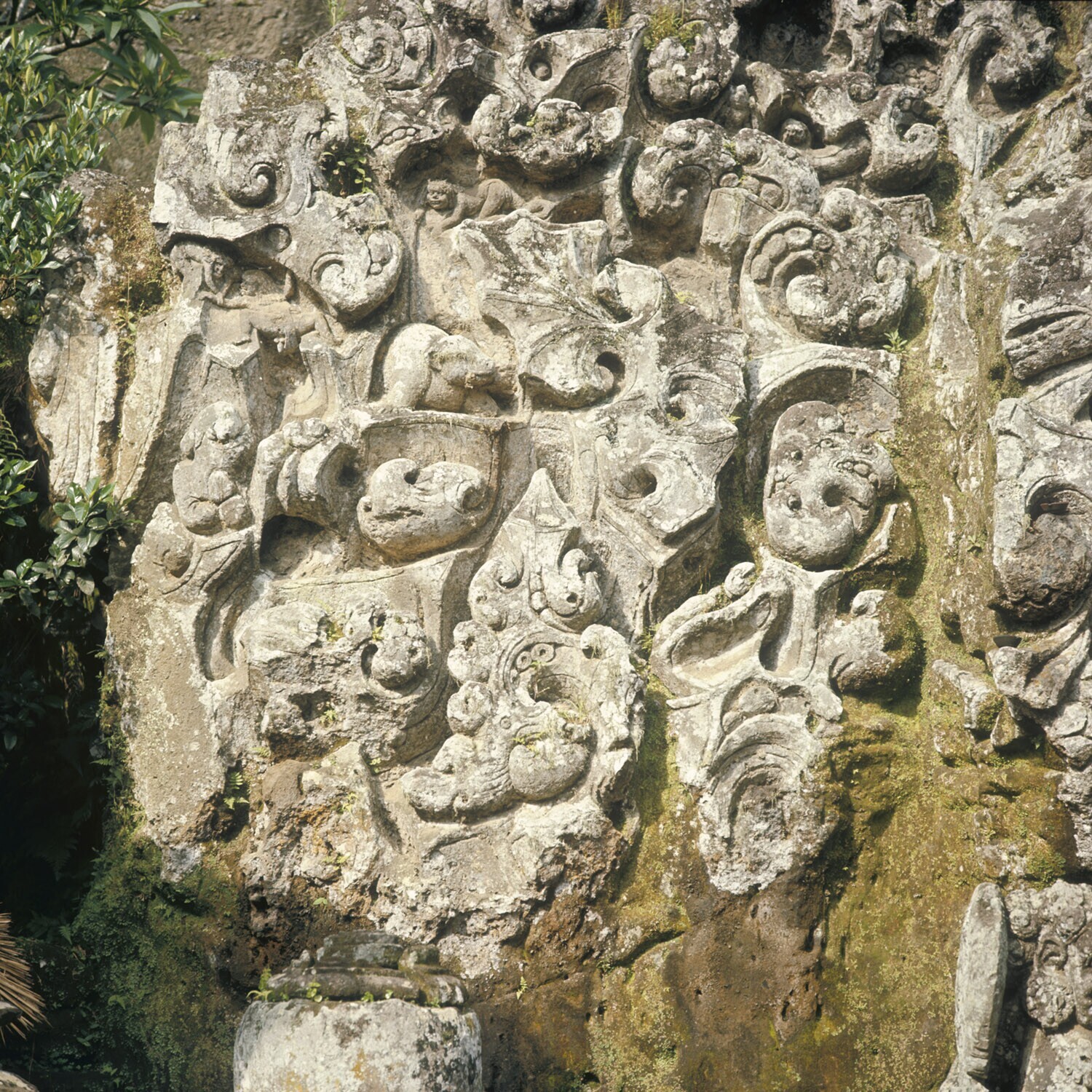 Reliefs at the Pura Goa Gajah or Elephant Cave