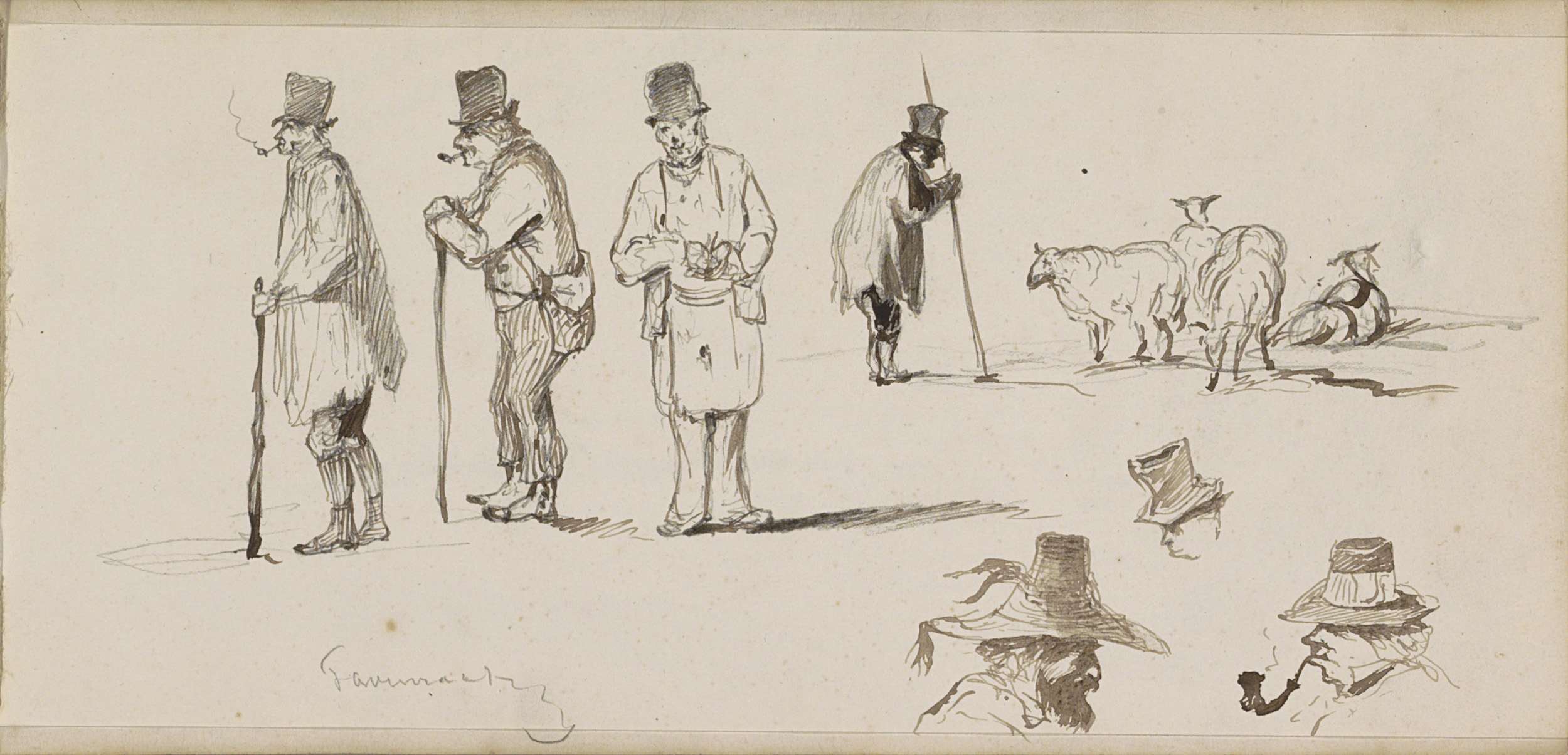 Mannen met hoge hoeden en wandelstokken, mannenkoppe...