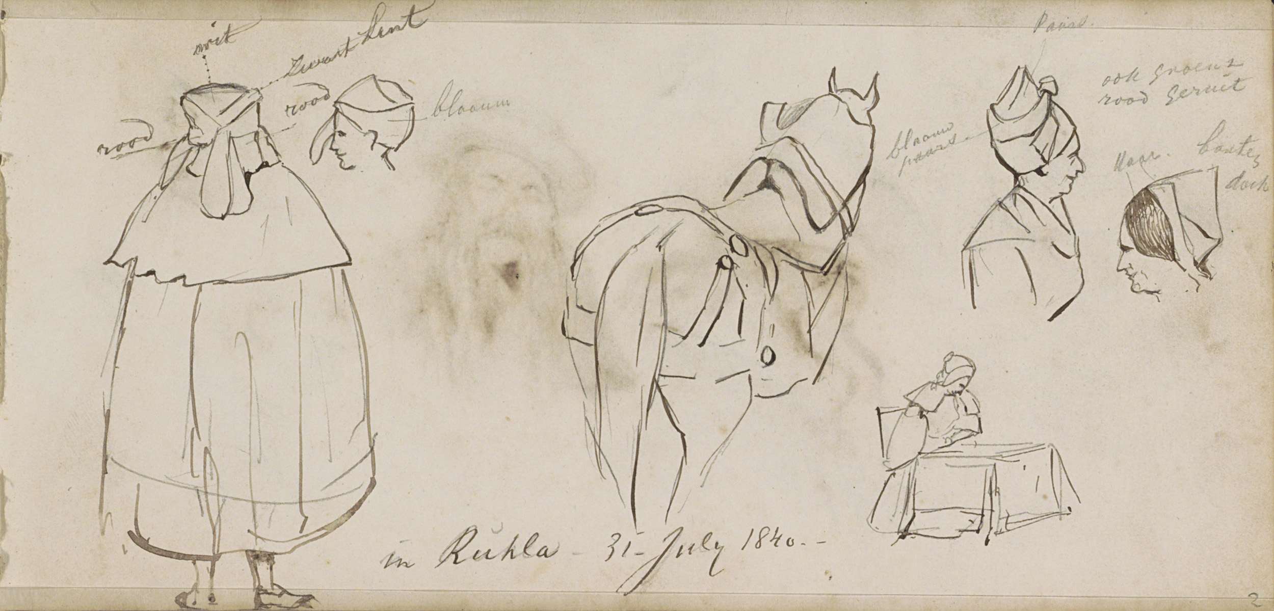 Kostuum met kap, een paard en vrouwenkoppen