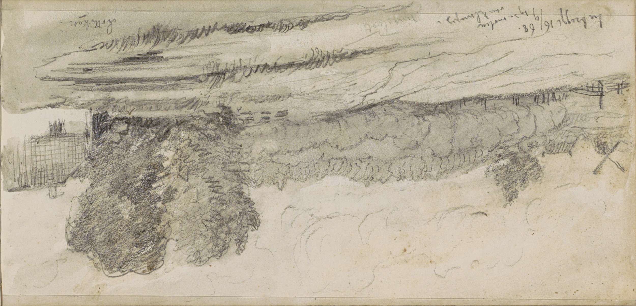 Landschap met bomen en een kerktoren