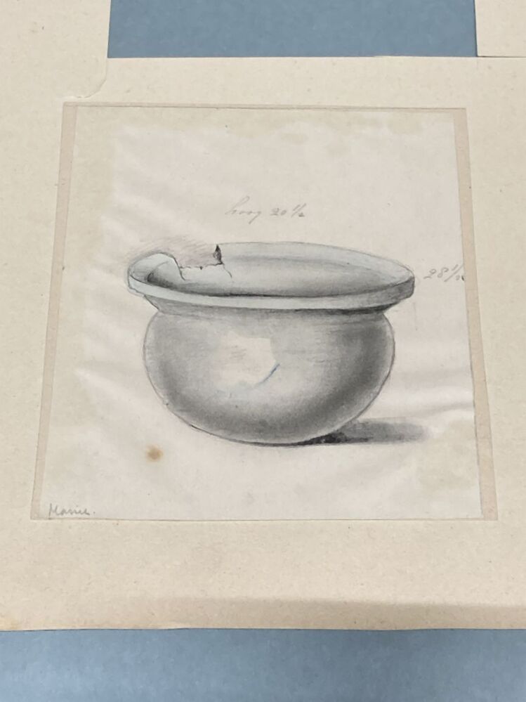 Tekening van drie urnen, gevonden aan de voet van de...