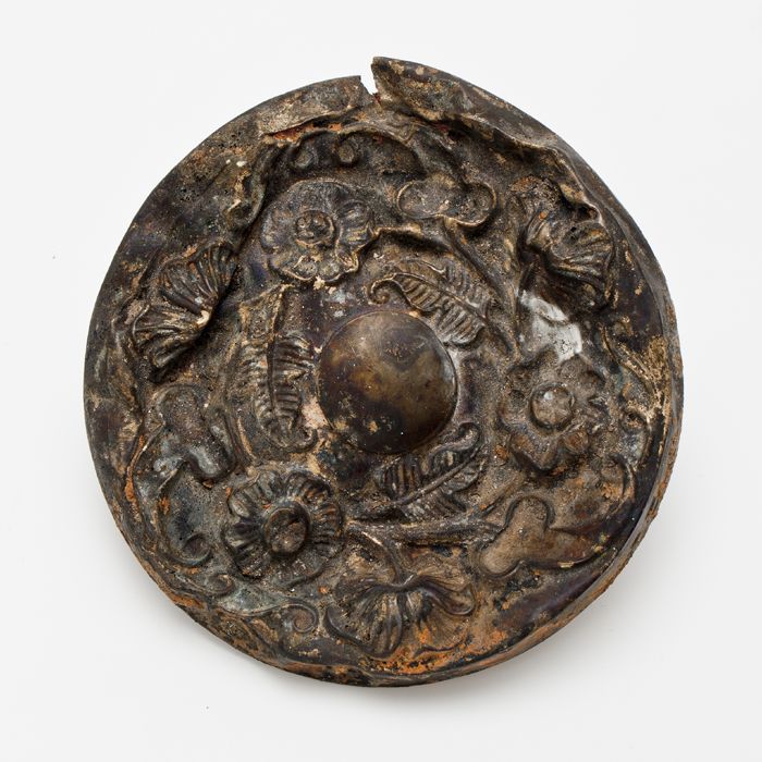 Koperen beslag met ijzeren achterplaat en met bloemv...