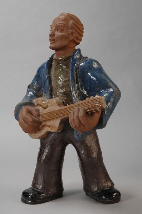 Terracotta beeld van gitarist, etalagemateriaal fa. ...
