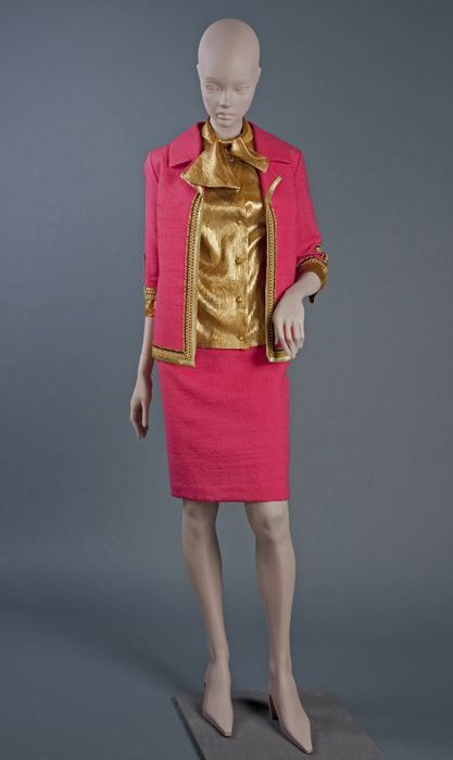 Driedelige japon of mantelpak, wollen rok, korte jas...