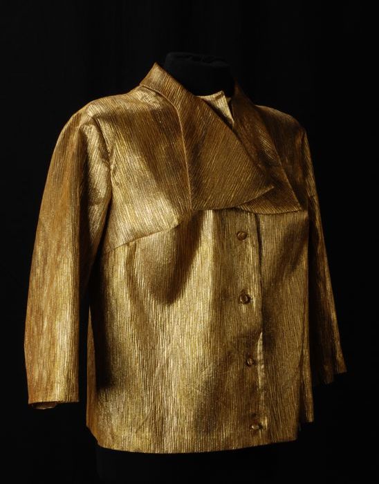 Blouse van goudkleurig lurex, driekwart mouwen en ko...