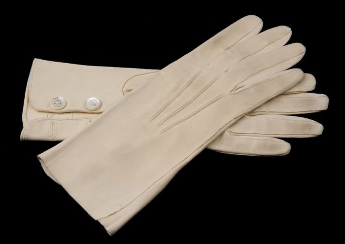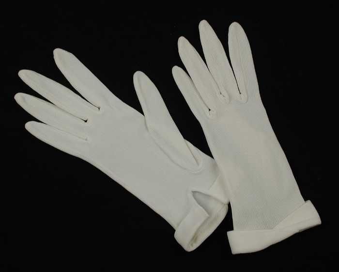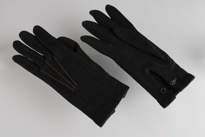 Paar korte rouwhandschoenen van dik zwart tricot, dr...