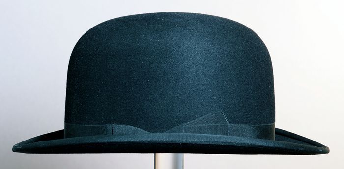 Zwarte ovale vilten bolhoed, leren ingang