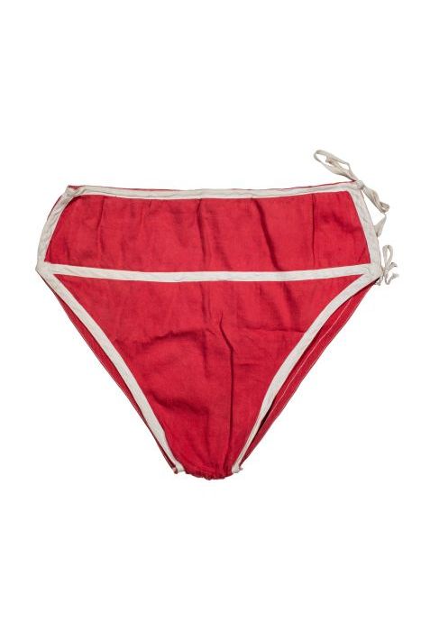 Zwembroek van rood keperkatoen met wit keperband