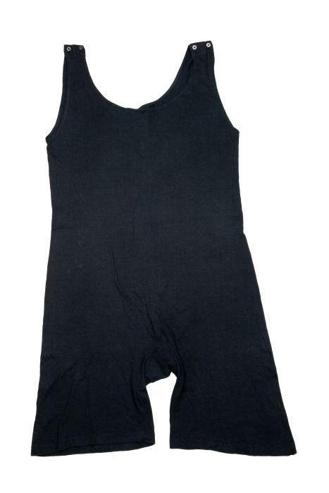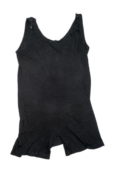 Badpak van zwart tricot katoen, korte pijpen en knoo...