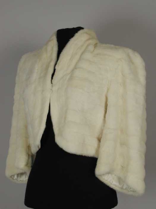 Korte avondjas in bolero-achtige vorm van wit bont, ...