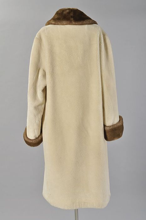 Knielange wijde damesmantel van wollige crèmekleurig...
