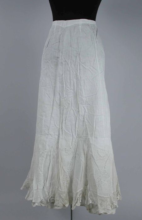 Lange wijduitlopende onderrok van wit katoen, brede ...