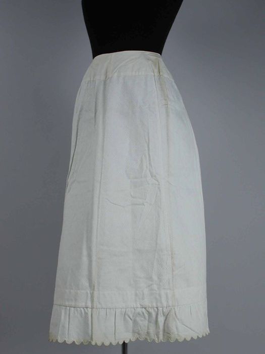 Lange wijduitlopende onderrok van wit piquékatoen me...