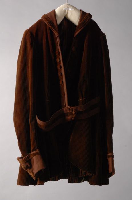 Donkerbruine ribfluwelen kinderjas, met lange mouwen...