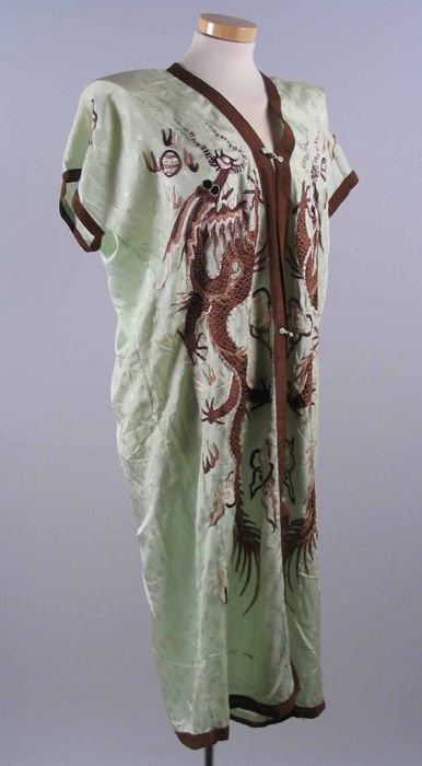 Kimono of ochtendjas van lichtgroen zijde met ingewe...