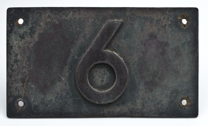 Huisnummerbord met nummer "6" van het Schielandshuis