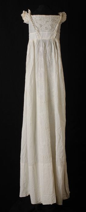 Bedjas of nachthemd van wit katoen, wijd model met l...