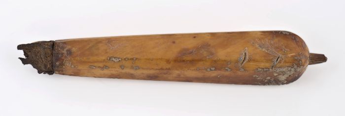 Tinnen fluit, ocarina, peenvormig met elf gaten in v...