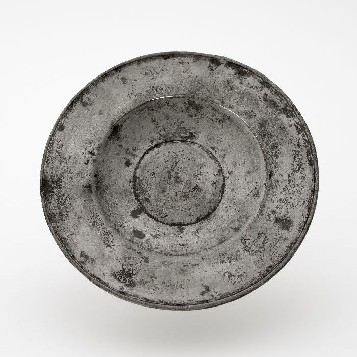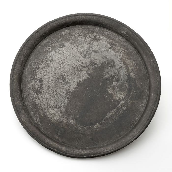 Rond tinnen bord met opstaande rand