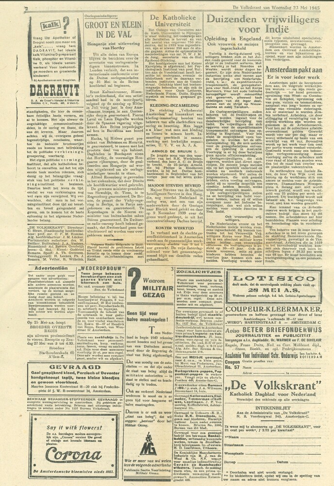 De Volkskrant, woensdag 23 mei 1945, 22e jaargang no...