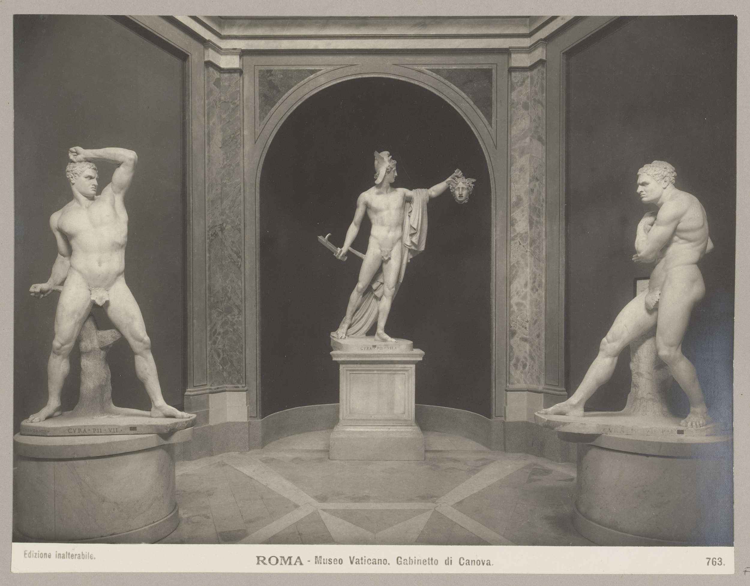 Beeldhouwwerken met in het midden Perseus met het ho...