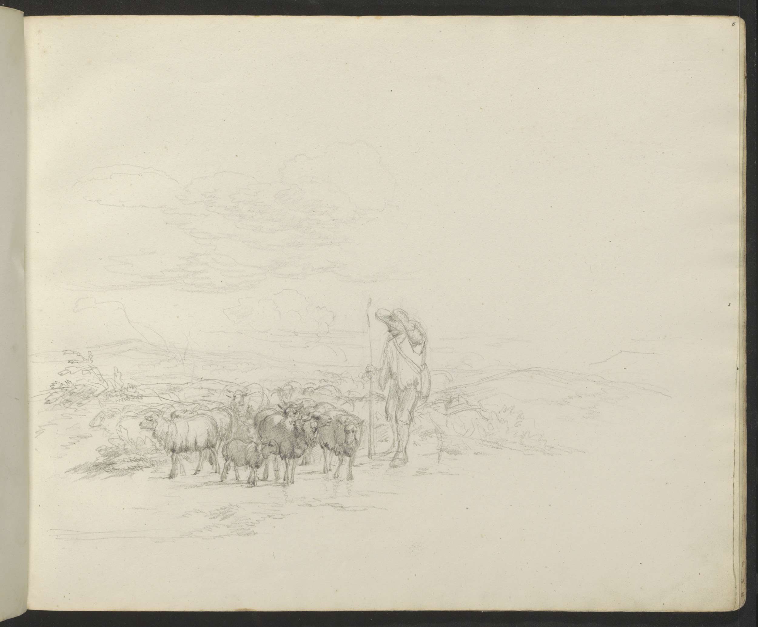 Studieblad met schaapsherders en kudden