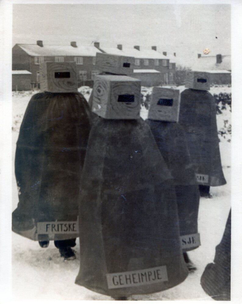 Carnaval bij Peters in de Laak. Vlnr 1e met hoed Huu...