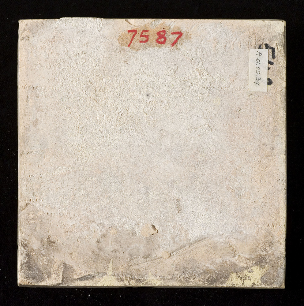 Tegel van keramiek met tinglazuur, voorstellende: or...