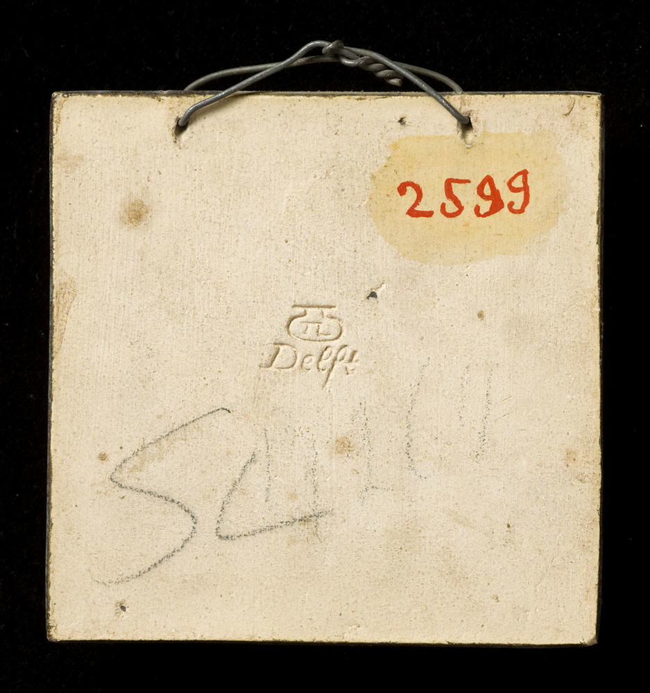 tegel van aardewerk in onderglazuur, voorstellende: ...