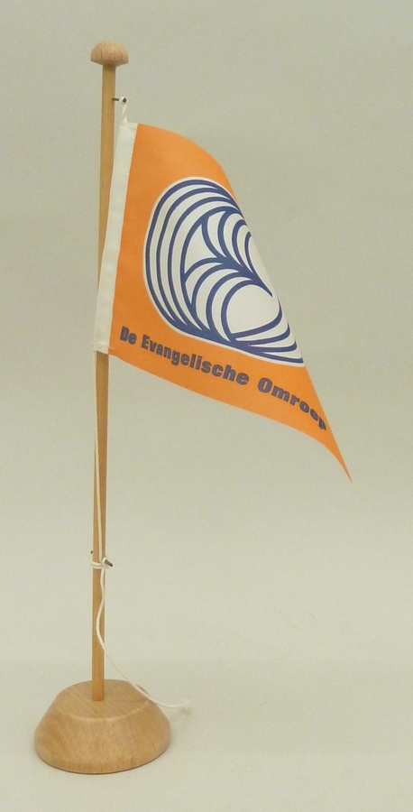 Oranje vlaggetje met embleem van de Evangelische Omr...