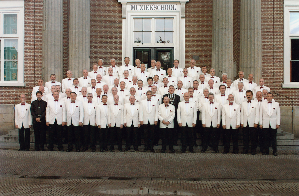 Het Harderwijker Mannenkoor poseert met de burgemees...