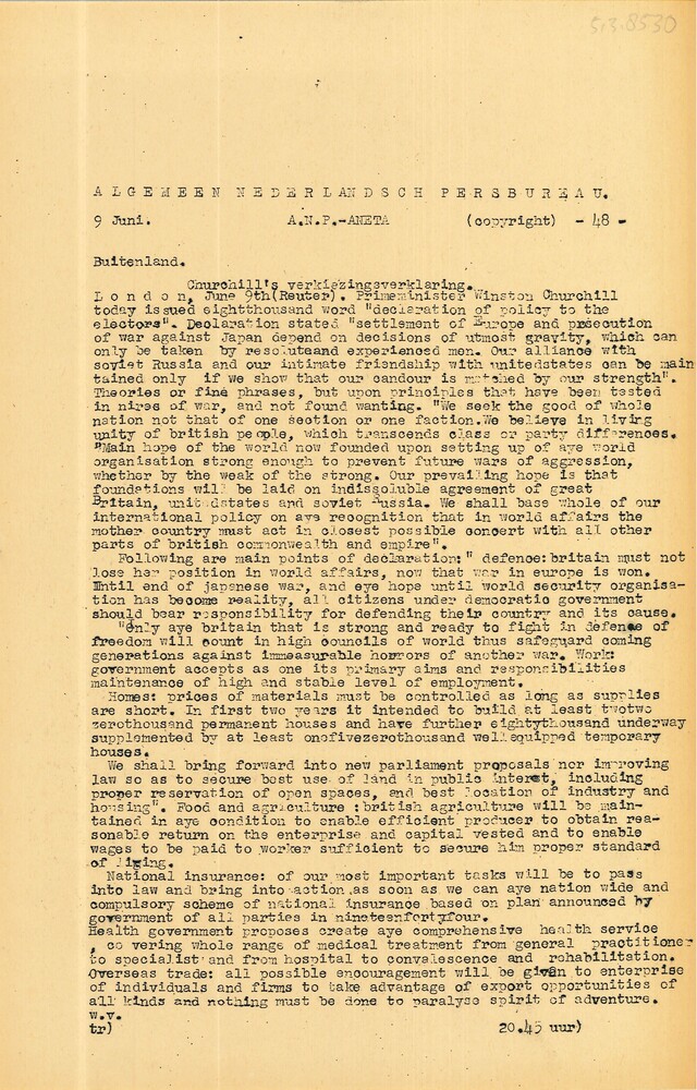 Vel: Algemeen Nederlandsch Persbureau, mededelingen,...