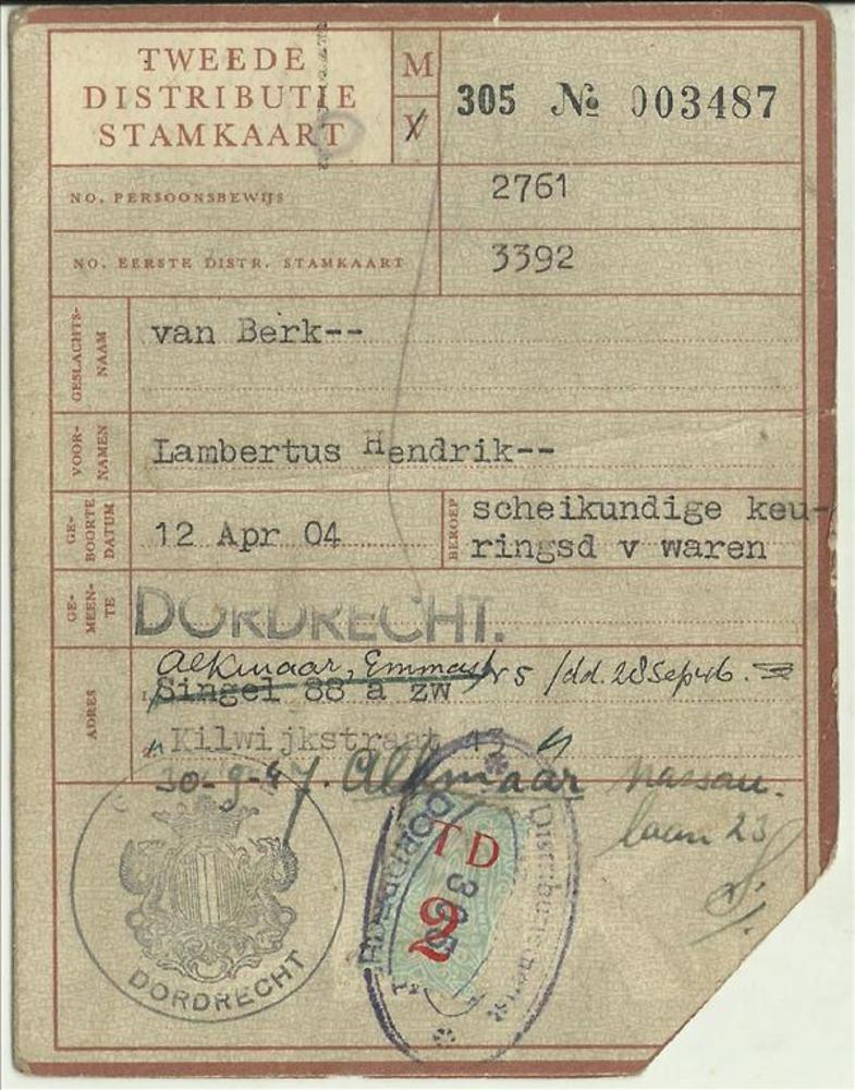 Tweede Distributiestamkaart van : Van Berk, Lambertu...