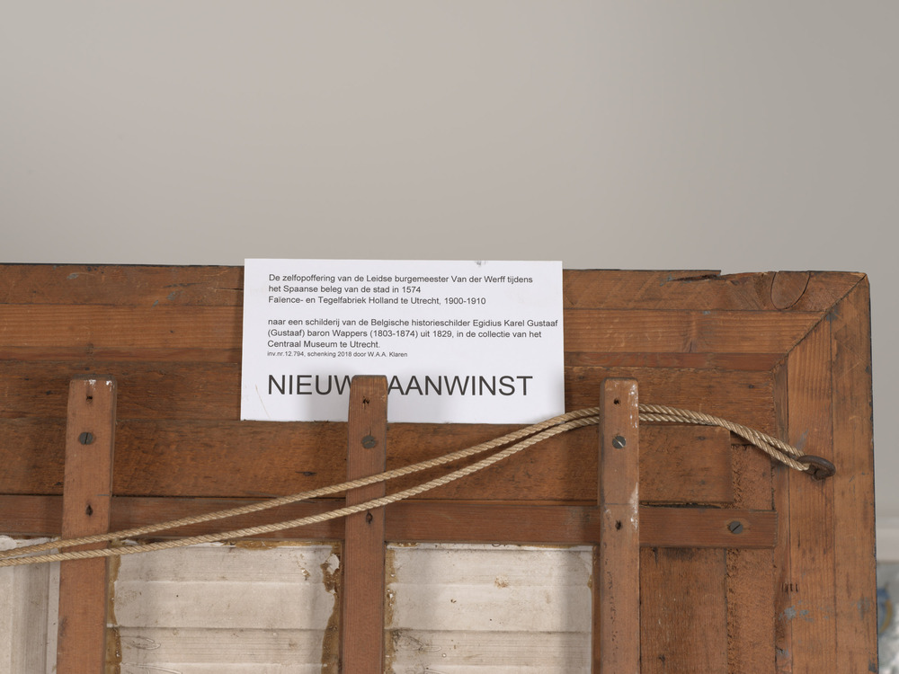 Tegel van keramiek met tinglazuur, voorstellende: De...