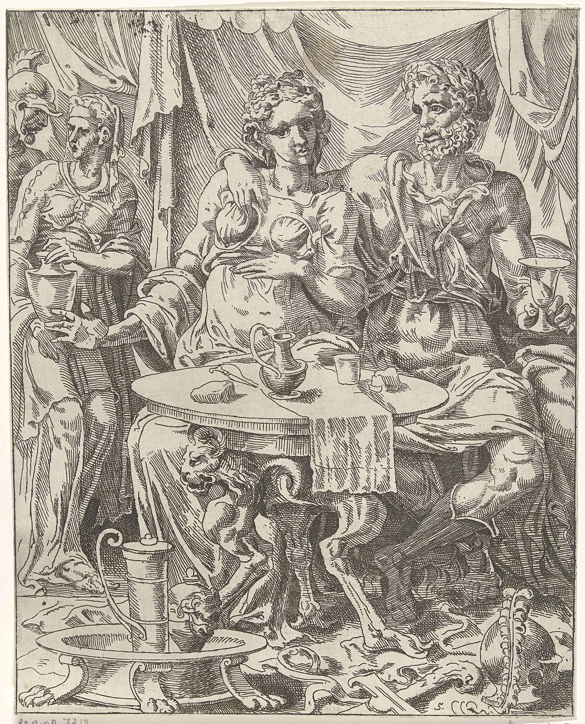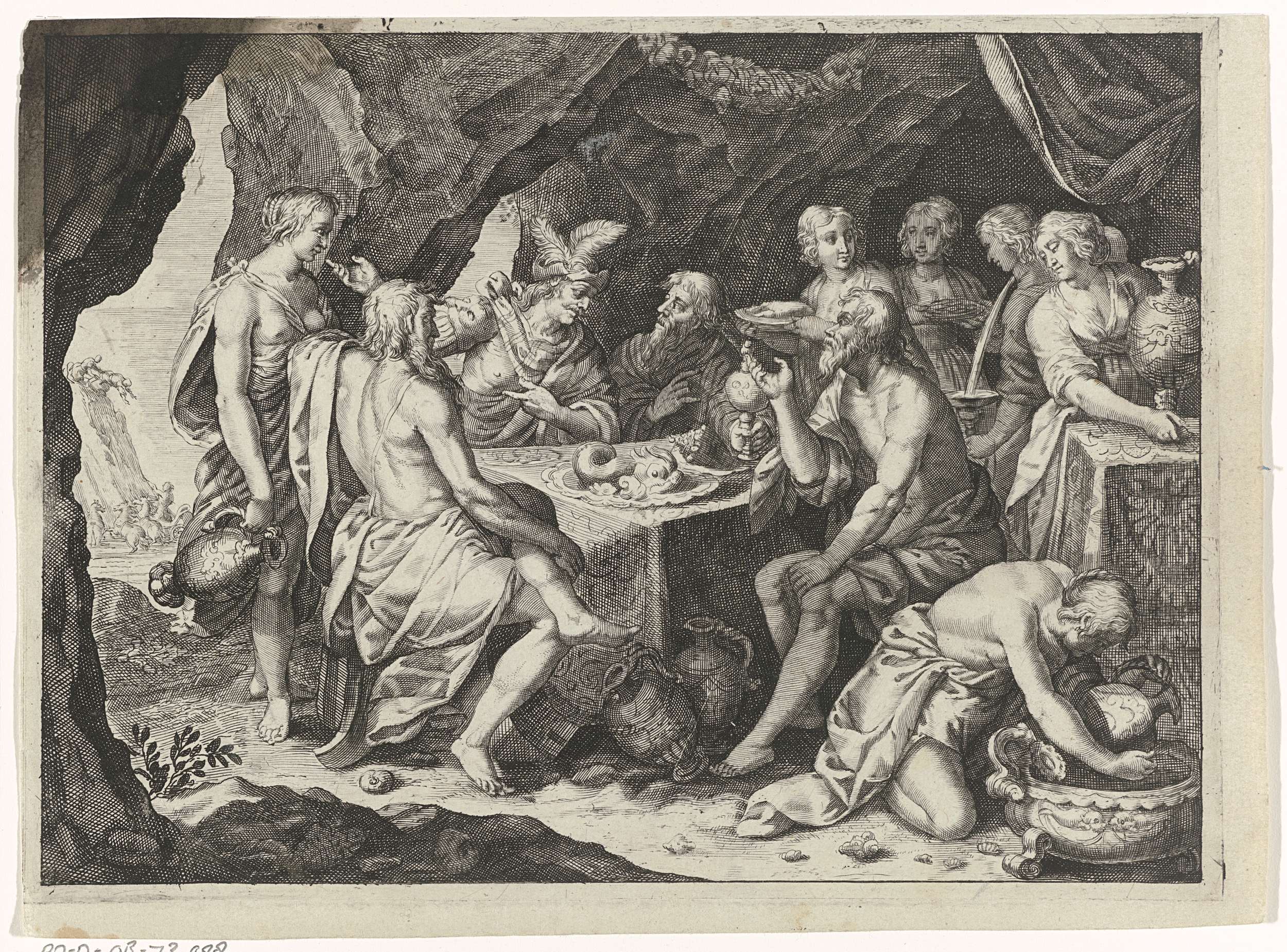 Scène uit de Metamorfosen van Ovidius: een maaltijd ...