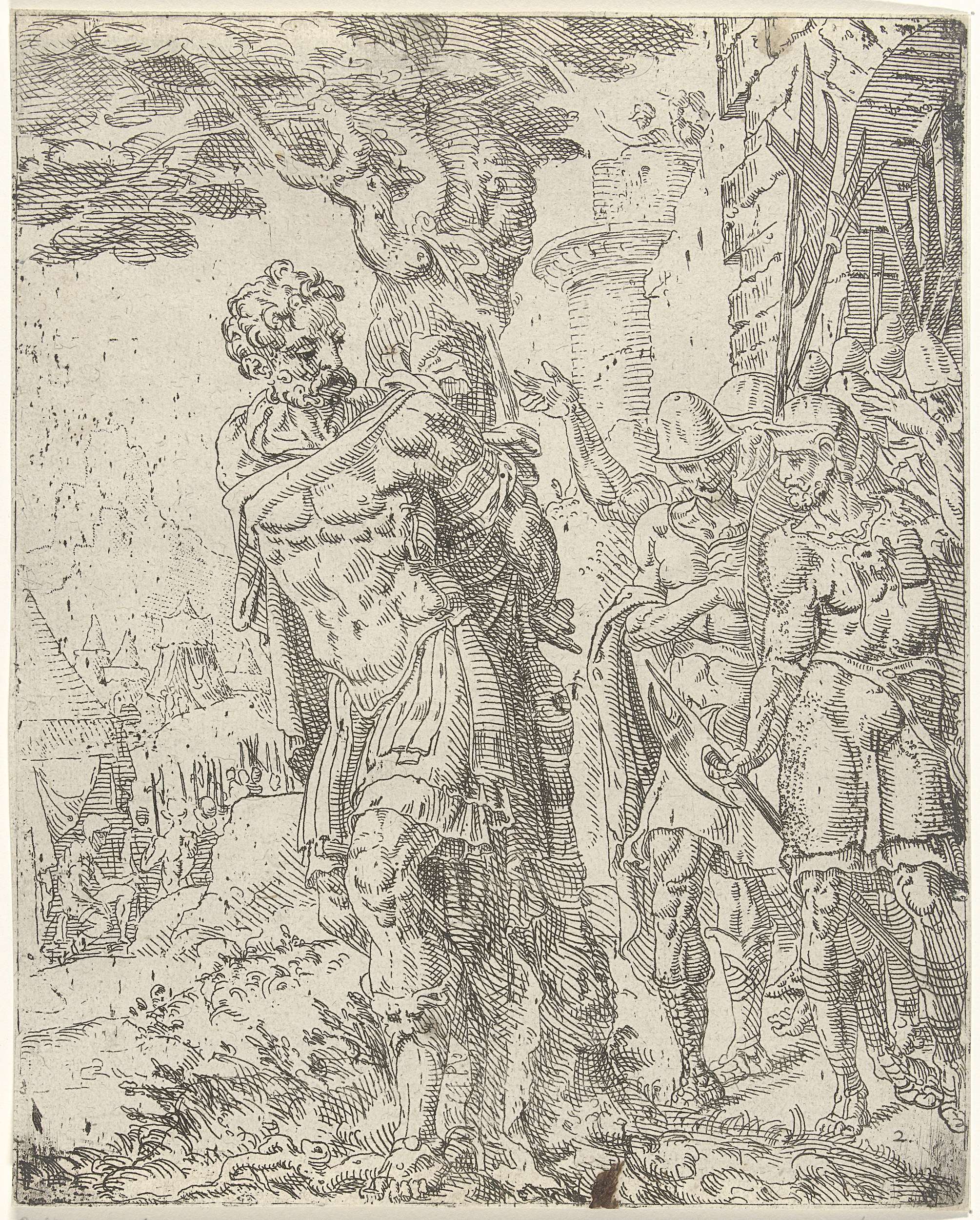 Landschap met Davids mannen die Nabal om voedsel vragen