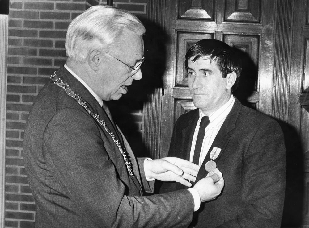 Bert Hannessen ontvangt de bronzen medaille van het ...